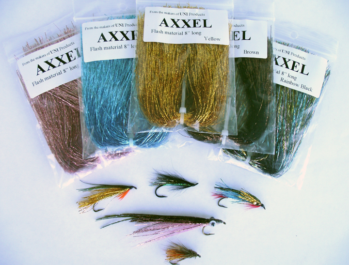 UNI-Products, a world leader in the supply of spooled fly-tying materials, announces the addition of five fresh colors—brown, yellow,rainbow black, pink, and light blue—to their very popular Axxel Ty-Rap product. Axxel 8″ Ty-Rap is one narrow strand of flash material supported by two nylon micro-filaments for strength. It is packaged in bundles of 8″ lengths.
