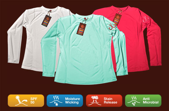 All of our Women’s Light Weight MTCdryprotect System™ Long Sleeve Crew Neck fishing shirts are designed to help you stay comfortable and protected all day long. Our performance Crews are the perfect combination of functionality and style. They have 50SPF, Moisture Wicking, Stain Release and Anti Microbial technologies giving you the protection you need in a shirt that is designed to be one of the most comfortable and breathable shirts known to women. Made in the U.S.A. The shirts retail for $59.00