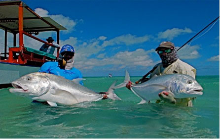 Steve McLaughlin (right) and Mike Hennessy owner Hawaii on the Fly with a double header of Giant Trevally (GT’s) landed on the fly, December 2012 on Christmas Island Republic of Kiribati.