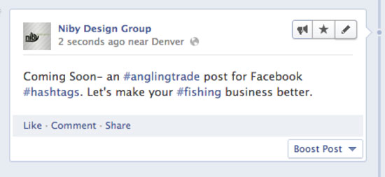 To illustrate the potential benefit for your business, I created a quick post on my Niby Facebook Page. I wanted to use the #fishing hashtag because: 1) It’s everywhere and 2) I knew I’d get good exposure.
