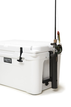 Vertically mounts to the side of your YETI® Cooler for easy fishing rod access whether paddling or boating. Works with casting and spinning rods. Heavy-duty polypropylene tube is attached to a sturdy, stainless steel, powder coated bracket. It slides securely into the AnchorPoint™ Tie-Down slot of your YETI® Cooler without getting in the way of the lid. $39.99.