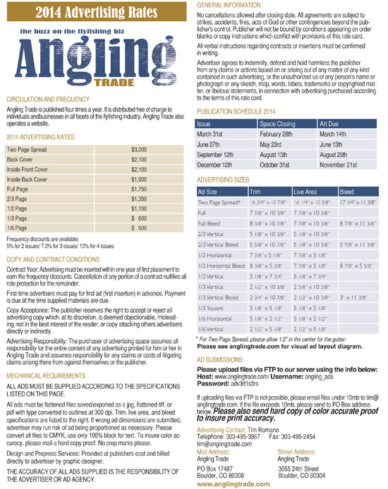 Angling Trade Magazine 2014 Schedule Released 0 By Angling Trade on 12/17/2013 Industry News Click Rate card above to download a hi-res PDF Share. Twitter Facebook Pinterest LinkedIn Tumblr Email