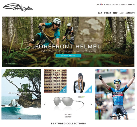 hybris, an SAP company, offers a platform with a multitude of new features to enhance the customer experience at smithoptics.com. The updated site includes a more intuitive navigation structure, refined presentation of the product stories, and a more visually impactful user experience overall. In addition, for Smith customers who chose to live their lives outdoors, the brand has established a mobile method to accommodate them that mirrors the presentation and functionality of the main website. Both the mobile and main websites feature wishlist functions and streamlined online shopping cart accessibility for buying direct, as well as easy access to the Dealer Locator functions from each page to purchase in-store.