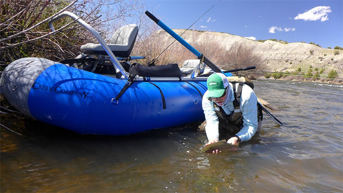 Seven panel ends with 9” rise. Custom NRS frame with leaning bar, 8′ , 2 pc Carlisle Oars with 8” Outfitter Blades, Atomic Aluminum Oarlocks. Handles like a sports car. Only 115 lbs and ready to drop in anywhere! No Trailer Required-Fits in the back of the truck or up on the roof rack! Absolutely bomber! The ultimate 2 person commando fishing machine… Retail: $2495, includes raft, frame, oars, oarlocks, pump, patch kit and carry/storage bag.