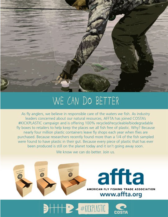 We’re proud to offer AFFTA members the ability to order recycled paper fly boxes on affta.org — you’ll find this is an easy, cost-effective way to lower your impact and help #kickplastic!