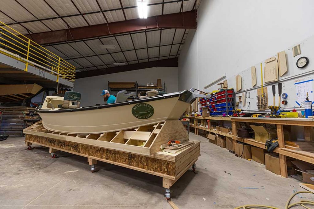 Innovation is a constant in a boat shop as are profanities and a fridge full of domestic beers. Focusing on the pertinent component of the aforementioned ‘pillars of a boat shop’, innovation has always been in the fabric of Boulder Boat Works. In January of 2021 the Boulder Skiff was launched after several years of research and development. The skiff added another option past the Pro Guide and Guide models for anglers to dial in on a boat profile that fit their specific style and home water. Skiffs with a squared off bow and long wet lines have been made for years, but we took it to the next step for the Boulder Skiff using the materials that have defined Boulder Boat Works for the last 20 years.