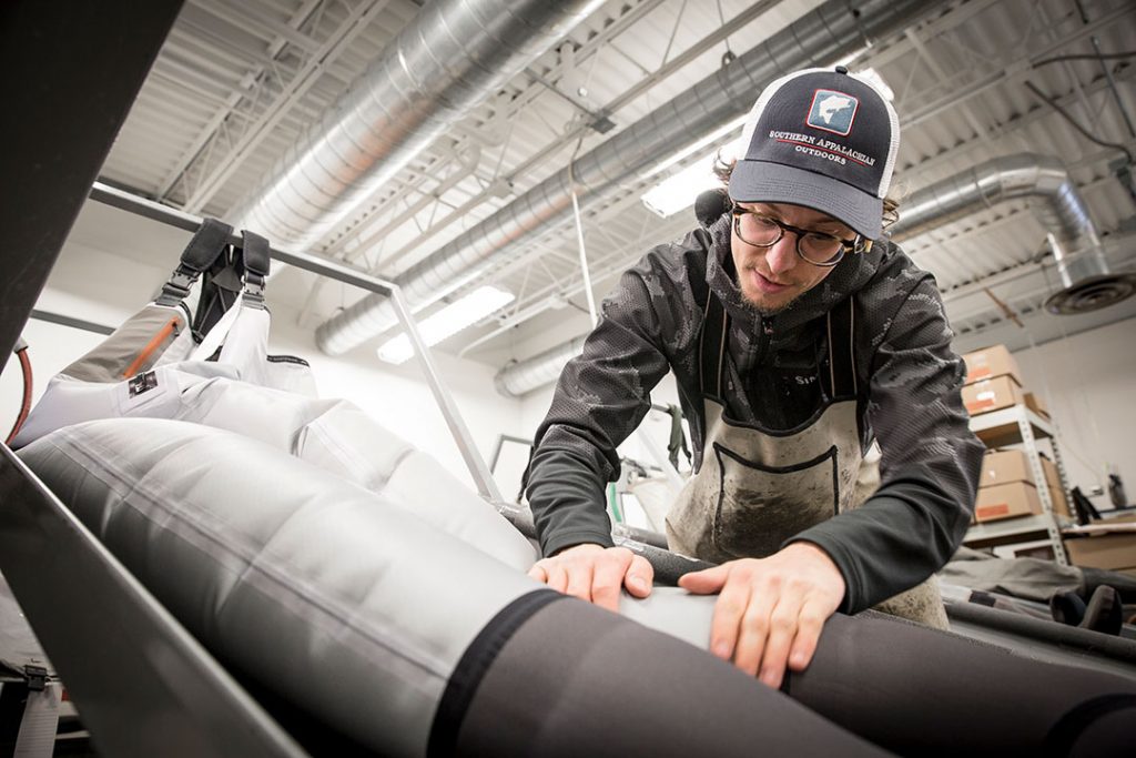 If there’s a single key to quality, it’s doing more on the front end. For Simms, before a wader reaches the production floor, not only have the materials passed rigorous lab and field testing, so have the designs and construction methods. Before the end result of all of the laborious, efforts are delivered, each wader undergoes a final test. Prior to leaving Bozeman, every pair of waders is turned inside-out, filled with water and inspected for leaks. Once verified leak free, then, and only then, are they turned right-side out, hung to dry and packaged for delivery.