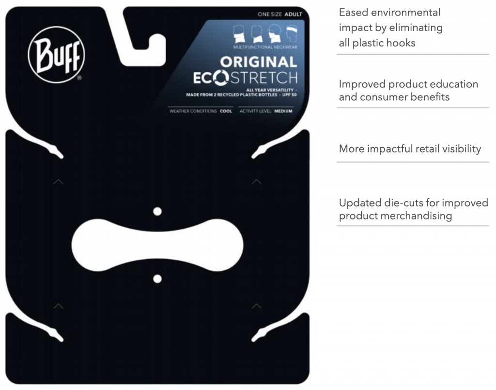 Before we dive into products, welcome the new BUFF® brand packaging – Designed to make an impact and made of 90% recycled cardboard, saving 72 tons of cardboard per year. The new packaging uses 30% less cardboard than previous Multifunctional Neckwear packaging and eliminates the plastic hook.