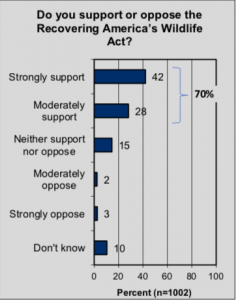A new survey conducted by Responsive Management finds that 70 percent of Americans support the Recovering America’s Wildlife Act, pending federal legislation that would allocate an additional $1.4 billion in annual funding to state agencies and tribal land managers for wildlife conservation.