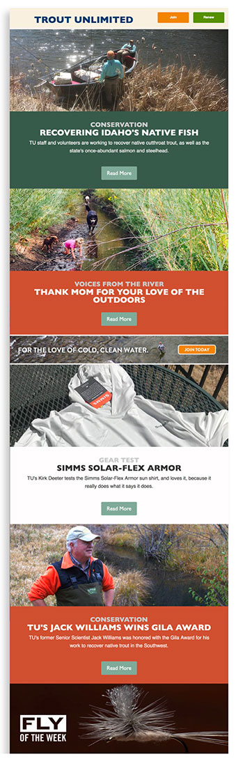 TU is on your side. Did you know the organization is going to plow nearly $80 million this year into fixing and protecting rivers? TU has the science team, the government affairs professionals, and boots in the water to actually get work done, from coast to coast. By signing up for the free newsletter, you’ll learn more about what TU is doing to make waters healthier and fishing better.