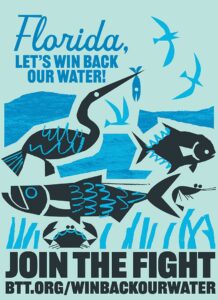 “Win Back Our Water” aims to mobilize Floridians to take action to protect their state’s waterways and builds on BTT’s water quality priorities, most notably advocacy in support of Everglades restoration. The campaign emphasizes the importance of water quality not only for marine ecosystems but also for the many Floridians who depend on clean water for their livelihoods, recreation, and quality of life.