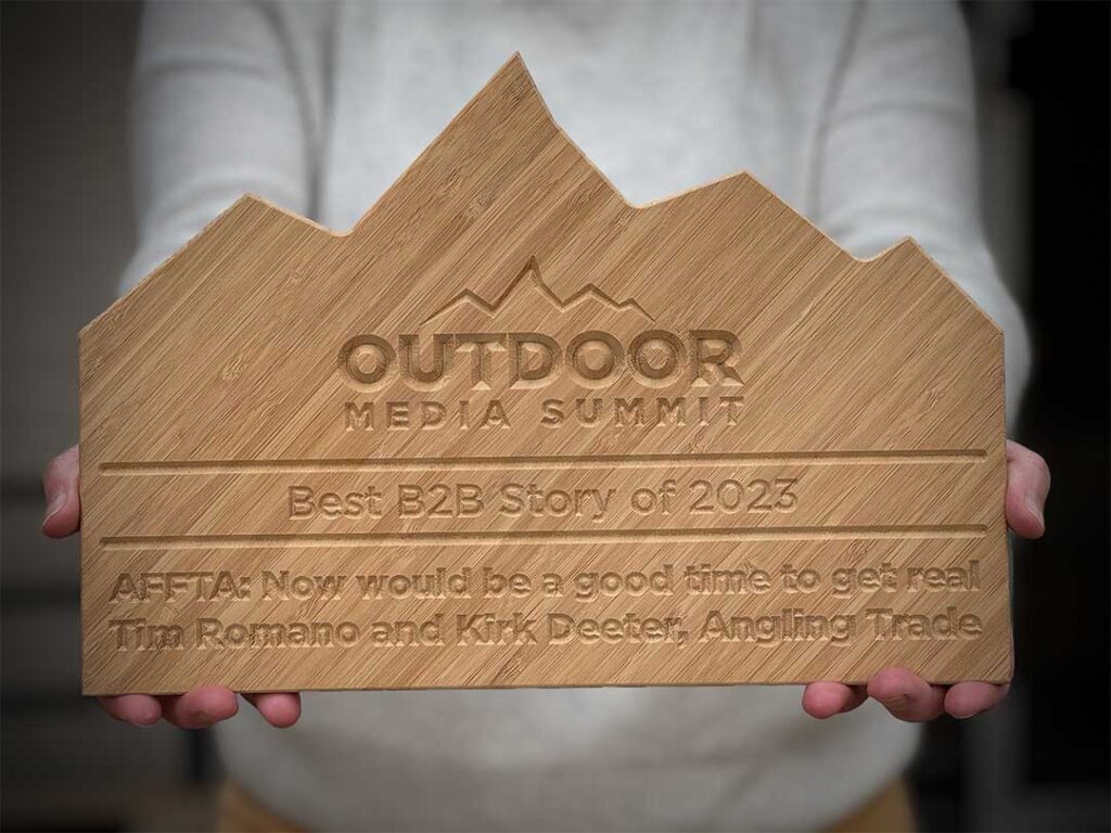 Please allow us to take a quick bow for having received an honor that makes us proud. Angling Trade was recently honored at the Outdoor Media Summit in Missoula, Montana, for having produced the best business-to-buiness story of the past year. It was called “AFFTA, now would be a good time to get real” and it talked about the death of trade shows as we knew them, and the need for the industry to coalesce behind a single vision.