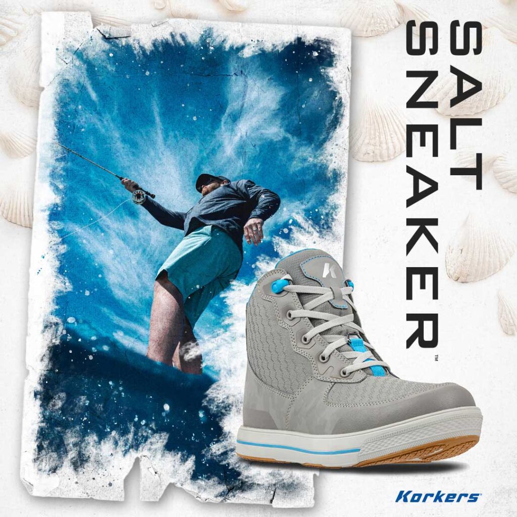 Korkers, the award winning outdoor footwear brand, is proud to introduce several new innovative footwear products bringing comfort to every step. The new Salt Sneaker Wade-Lite™ Wading Boots, Bantam Lite™ Wading Boots with OmniTrax®, All Terrain water shoes in Green Colorway, and DeYoung Tarpon Wading sock highlight Korkers Spring 2025 assortment.
