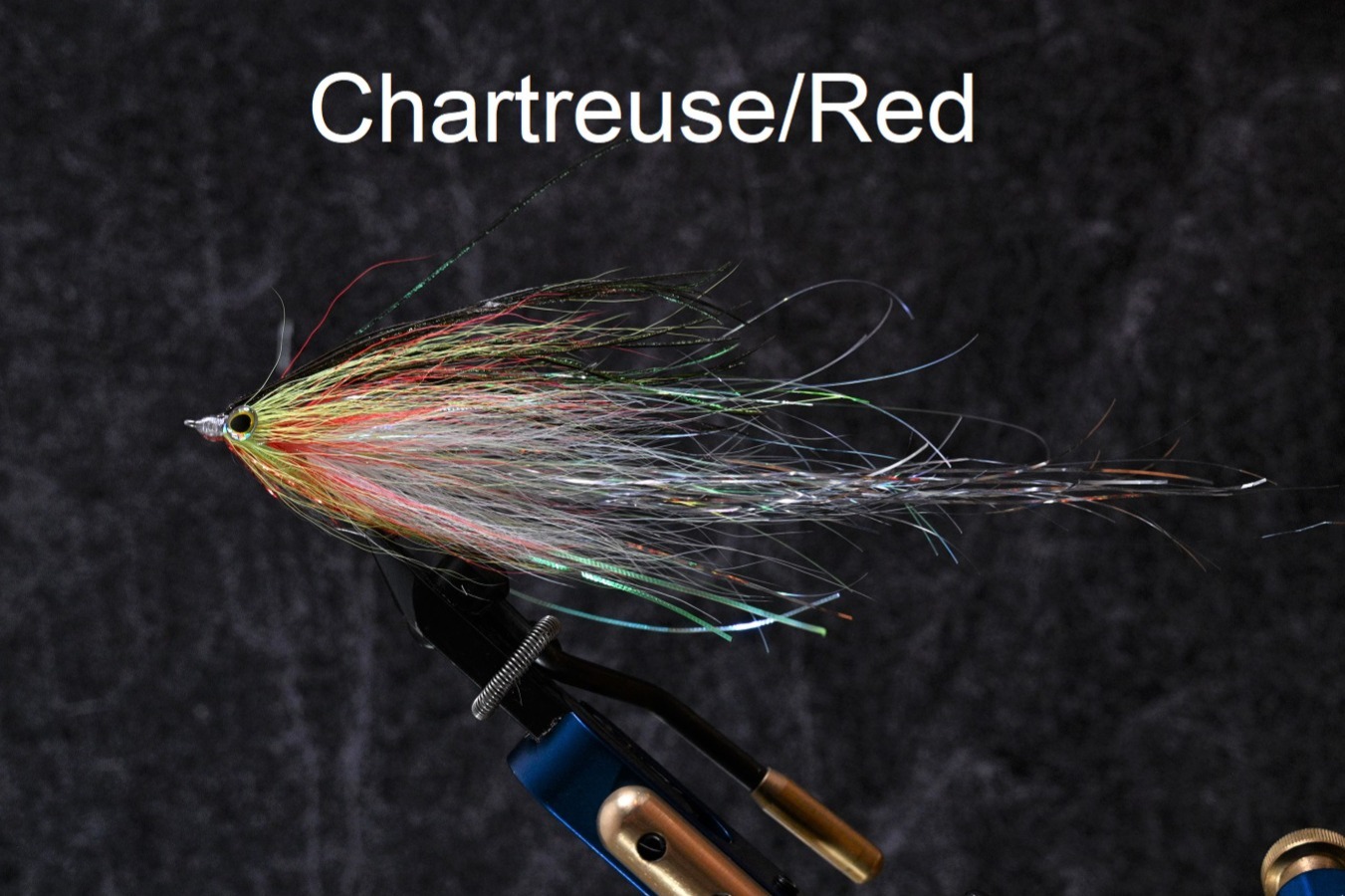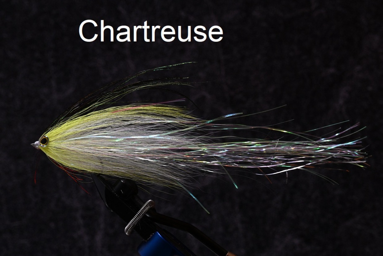A Three Step Hollow Fly with an undulated Flash-Tail . Tied on a 3/0 hook with a length of over 6 inches long, will drive predatory fish wild!!