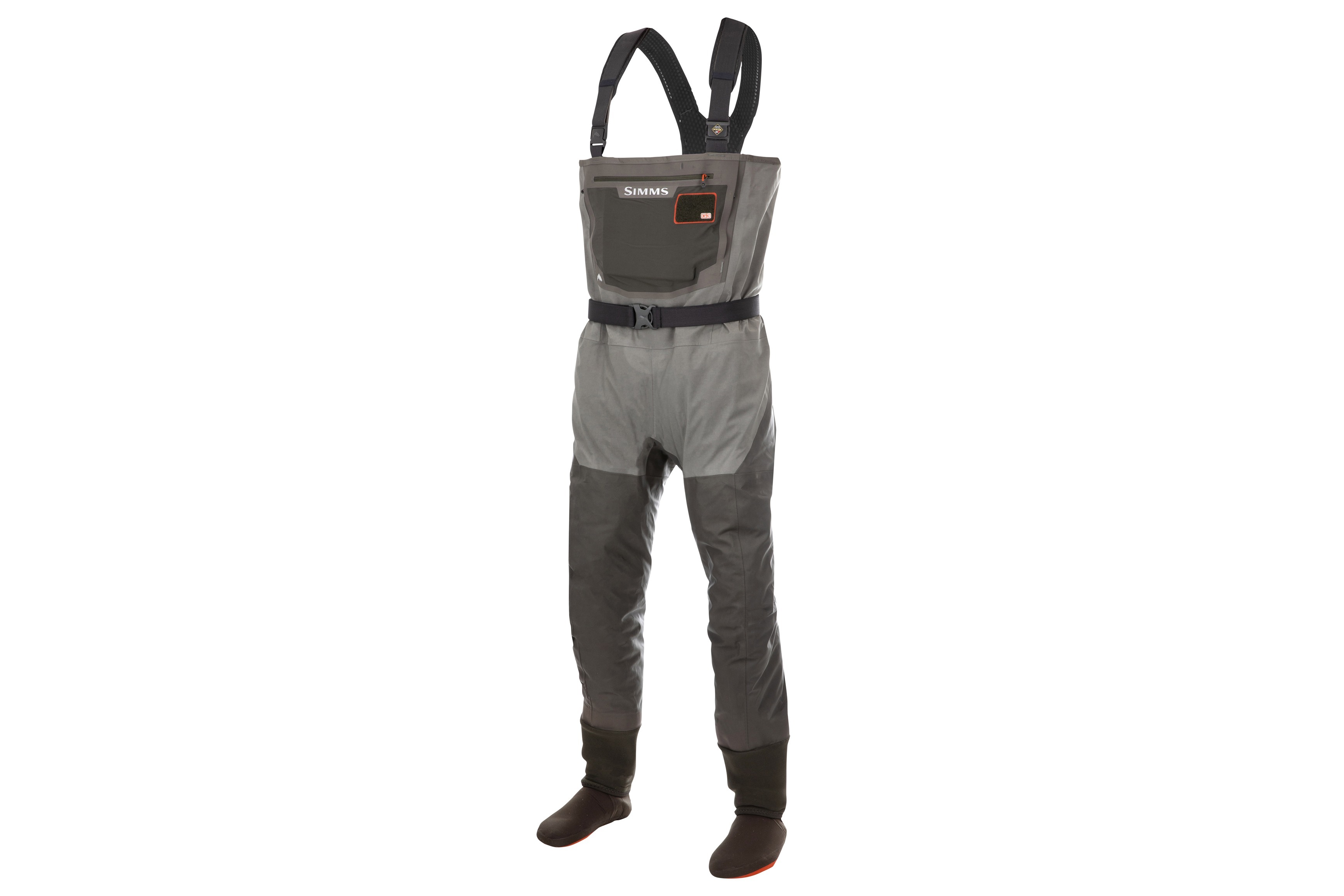 Simms longstanding award-winning wader is back and better than ever. With a new 4-layer GORE-TEX® Pro Shell fabric package in the lower, the all-new G3 Guide Stockingfoot Wader boasts a 7.5% increase in tongue tear strength, a 23% increase in standard puncture resistance, an 84% increase in pinhole puncture resistance, and is 33% more breathable than its predecessor. For added breathability, the new G3 is constructed with a 3-layer GORE-TEX® Pro Shell upper that can be rolled down for a waist-high conversion. Now equipped with ultra-comfortable air mesh suspenders, the patented built-in gravel guards have been improved by removing the boot hook and including a reinforced seam on the bottom to eliminate fraying. For small essentials, a new drop-in pocket has been included on the inside of the wader. Popular longstanding features such as the removable tippet-tender, patented front and back leg seams that offer maximum mobility and durability, the oversized zippered chest pocket, zippered reach-through micro-fleece lined handwarmer pockets, and anatomically correct left and right stockingfeet with an antimicrobial finish all come standard.