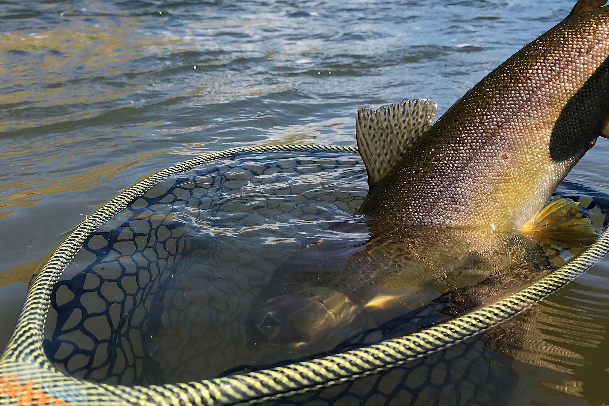 If we had to choose one net to go everywhere and do everything, it would be the Nomad Mid-Length. The additional length of this net and generous head size offers a solution for most angling scenarios, from a quick trip to the local panfish pond to epic journeys for trophy trout and salmon. When it comes to construction, the River Armor Edition takes durability to a whole new level. These nets are constructed with a core of carbon fiber and fiberglass, and an outer layer of woven DuPontTM Kevlar® fiber and carbon fiber. The result is an extremely strong, lightweight net with lifelong durability. Ruler markings along the handle offer an easy solution for quickly and safely measuring the length of your catch of a lifetime. There’s a reason more guides and shop staff use the Nomad Mid-Length than any other net available today.