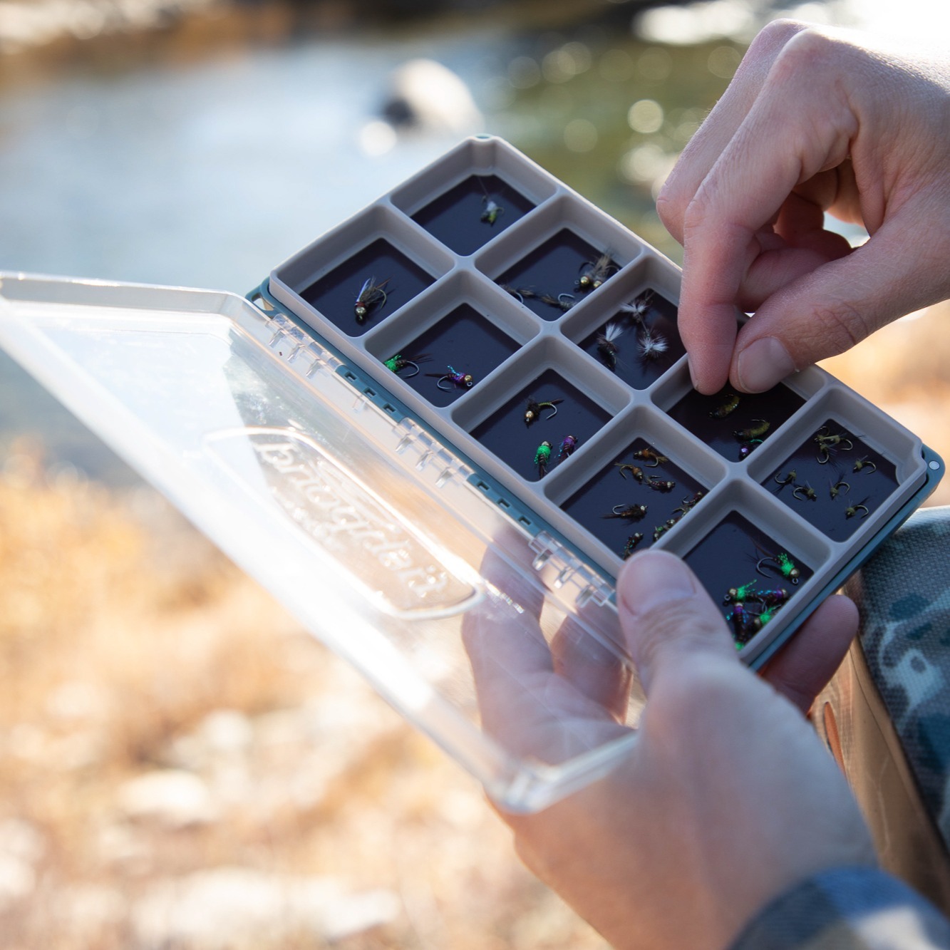 The workhorse of the Tacky Line, the Original RiverMag Fly Box features automatic storage when time is of the essence. Ten compartments provide specialized organization for each type, size, or color of fly, while silicone walls prevent mixing between distinct patterns. A strong, magnetic base and clear lid mean you’ll spend less time fumbling with your fly box and more time on the water. As with the rest of our line of fly boxes, the Original RiverMag is constructed using 100% recycled plastic.