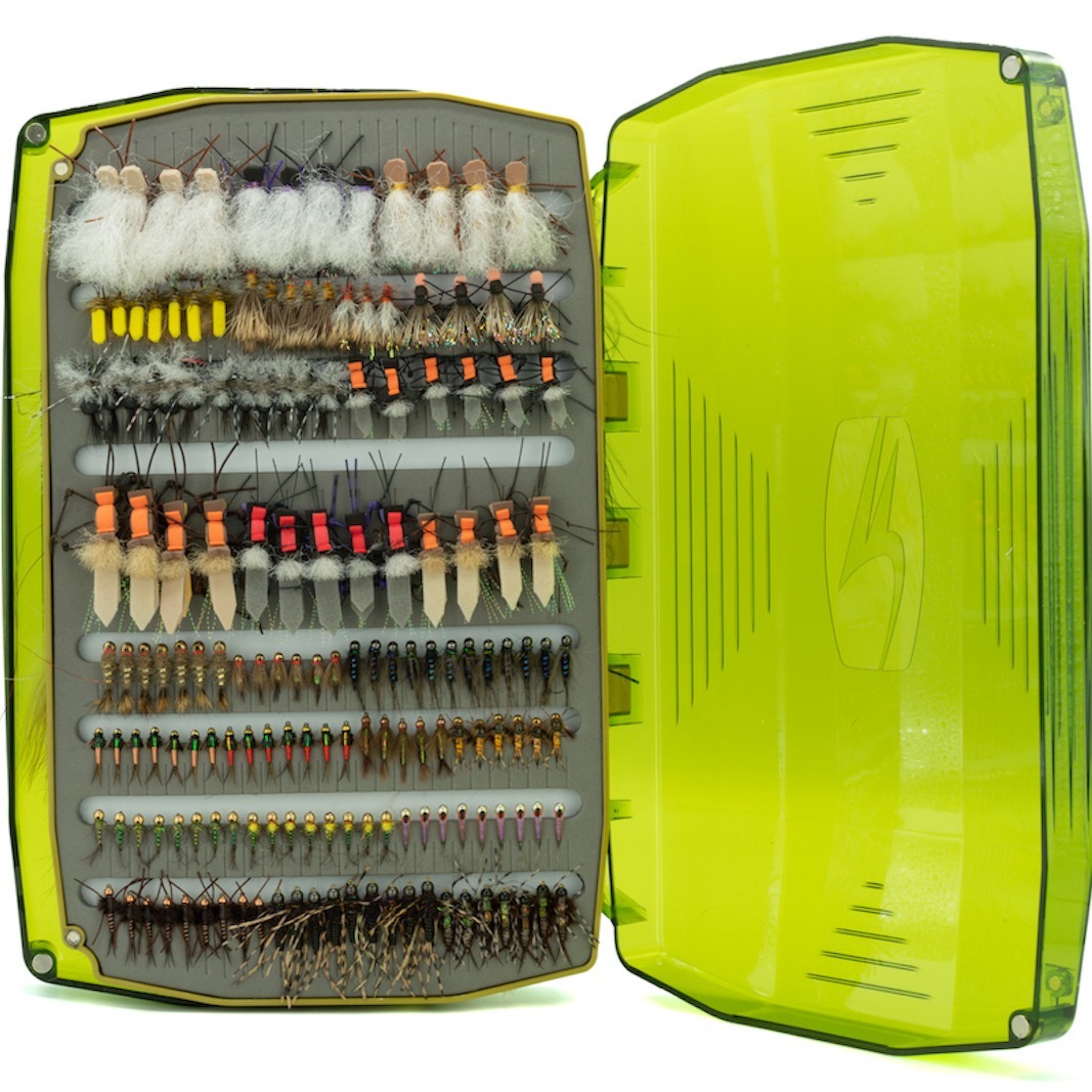 Serious anglers now have serious storage. This high capacity box will easily hold your largest streamers and bass bugs down to any standard dries & nymphs with a “high” side and a “standard” side to offer appropriate headroom for any fly-fishing adventure. See-through lids allow for easy fly ID and magnetic lid and swing leaf (replaceable) closures offer easy access.
