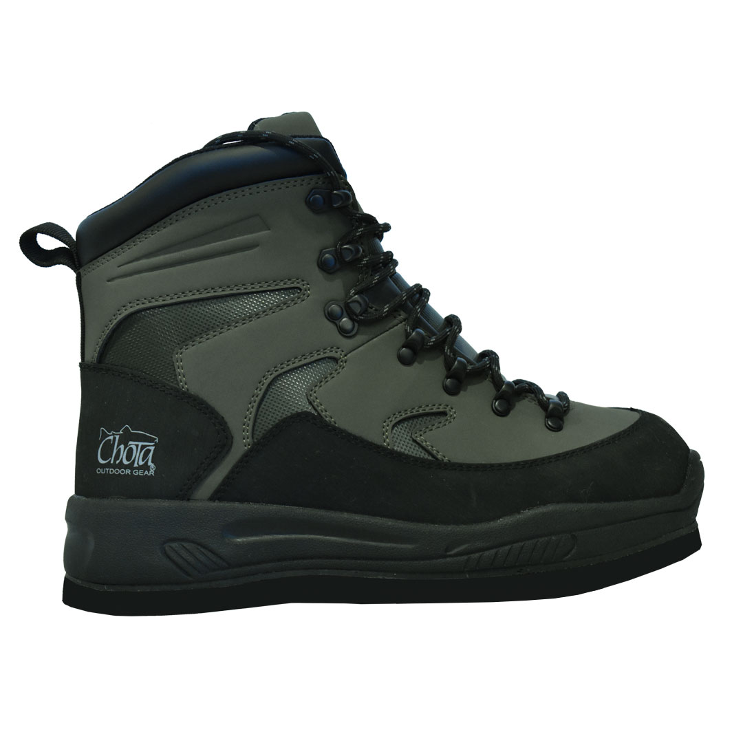 Designed for the harshest conditions, yet made for comfort, the Rough Ridge boot is tough and durable. The upper features a lightweight rubber coated PU coupled with a firm rubber toe and heel rand to make it an extremely resilient boot that can take a beating. The synthetic inner lining and 3mm insole is water resistant keeping the boot dry and lightweight, while its EVA midsole offers all day comfort and endurance for those long days on the water. The Rough Ridge also features high traction rubber or cleatable felt soles that will accept all styles of our Chota cleats.