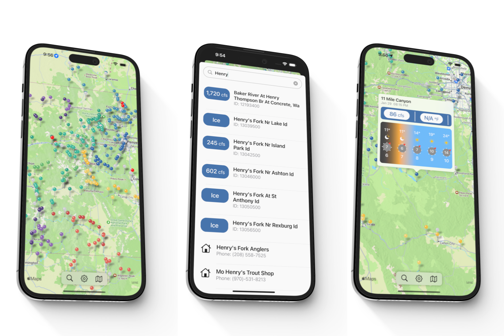In a world where there’s an app for everything, it’s rare to come across one that really works for fly anglers. FLOW MAP gives you the only three things you should care about when planning your next trip – river flows, weather and the proximity of the nearest fly shop. Let’s face the fact that America’s rivers are no longer predictable. Their flows (measured in cfs), their depth and water temperature can vary wildly, affecting the hatches that can make or break your day. Rivers can close due to low flows and high water temperatures.