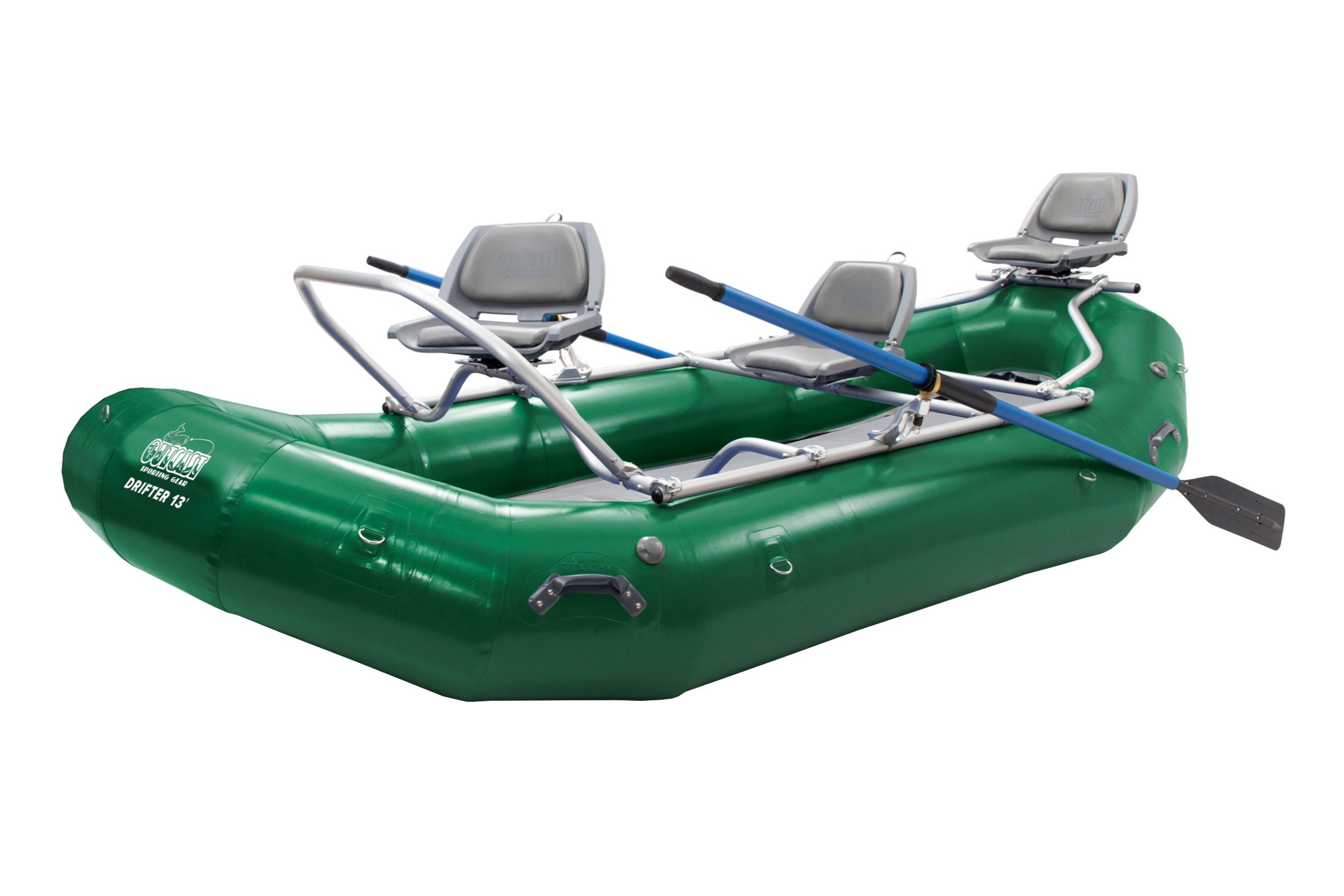 The Outcast Sporting Gear (OSG) Drifter 13.0 Package is a fishing raft package that won’t break the bank. The raft is constructed with a heavy-duty PVC shell, filled with airtight urethane AIREcells for increased durability. The package includes a functional three-person NRS fishing frame with 3 padded folding seats and your choice of color Gray or Green. The OSG Drifter is a versatile raft for anglers on a budget, so you can spend time on your favorite day stretch or gear it up and head out on a fishing expedition.